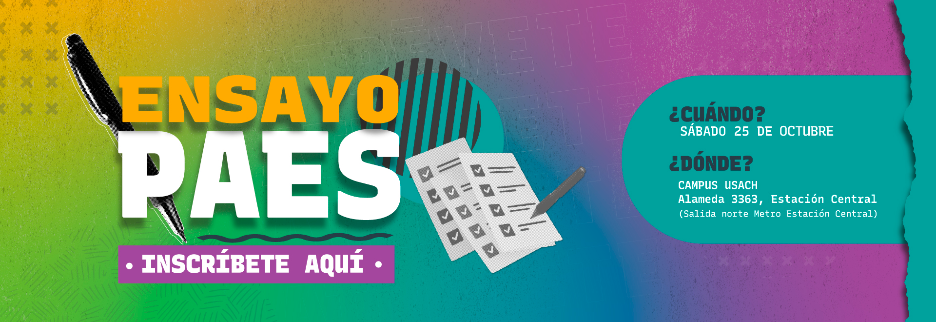 La Usach te invita a vivir una experiencia única antes de la PAES: el Segundo Ensayo PAES USACH 2025. Si estás cursando la Enseñanza Media y quieres evaluar cómo estás con tus conocimientos, ésta es tu oportunidad de practicar en un ambiente real, con todo el estilo usachino 🙌